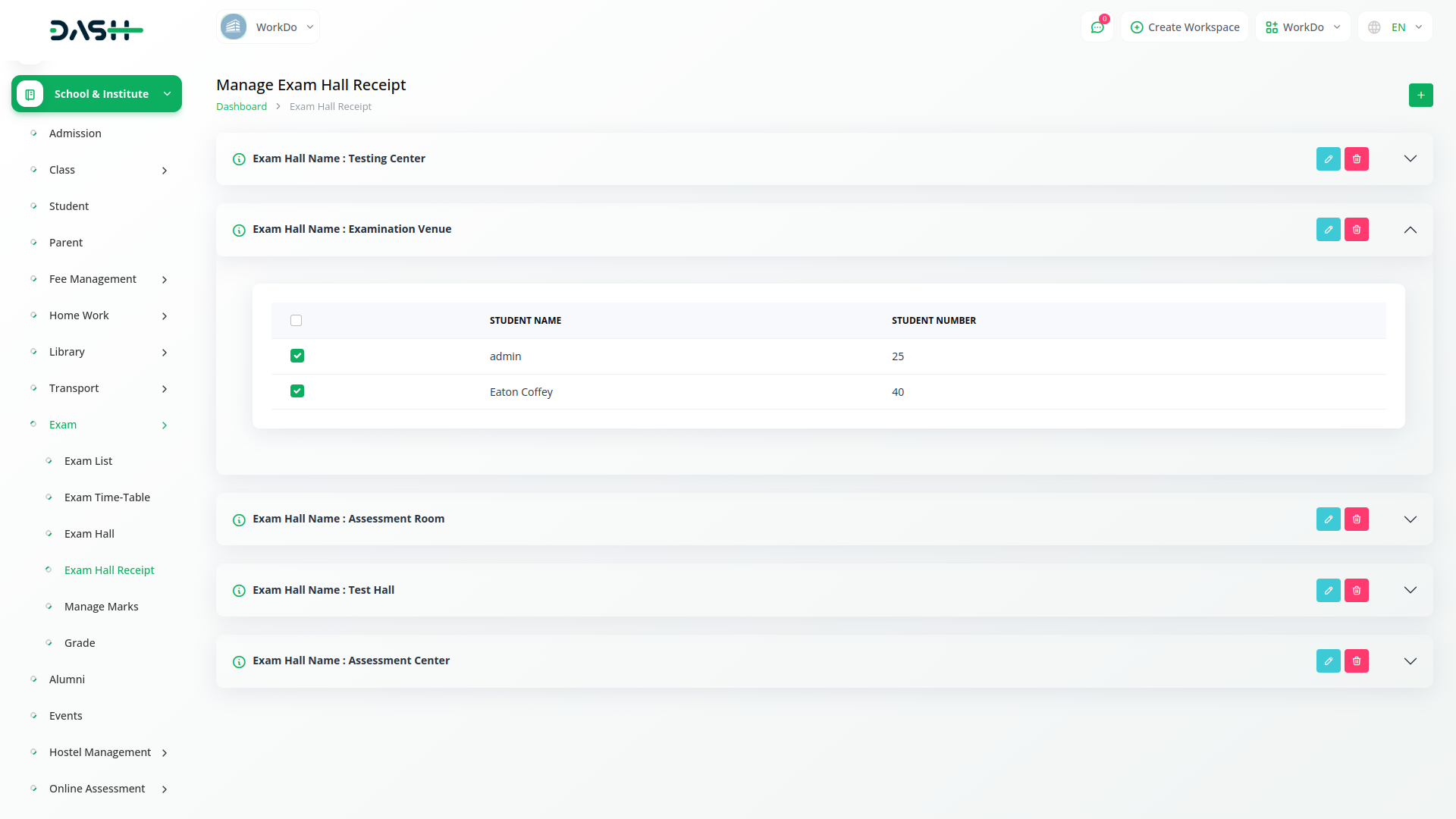 One of the key features of Dash SaaS`s Exam Module is its capability to generate hall receipts or tickets for students, streamlining the process of exam venue allocation. These hall receipts are customized based on factors such as seating capacity, accessibility, and other requirements, ensuring smooth and organized exam logistics. By providing clear instructions and details, these hall receipts facilitate seamless communication between administrators, students, and exam supervisors, enhancing the overall examination experience.