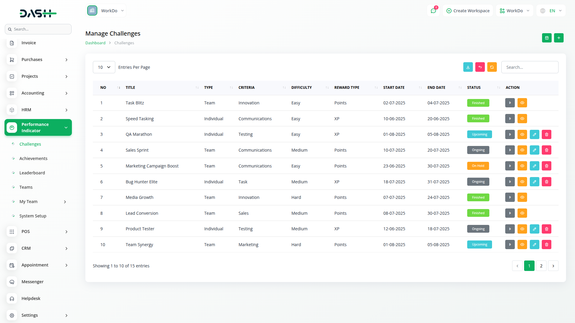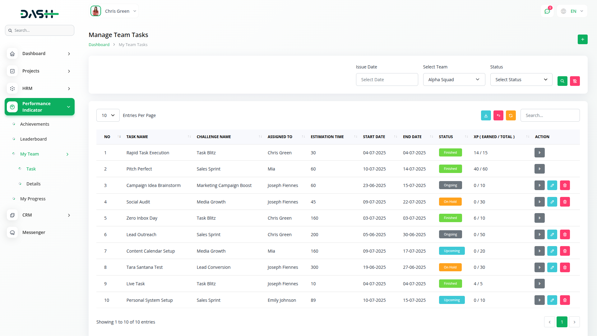 O Add-on do Indicador de Desempenho transforma o Dash SaaS em um mecanismo de gamificação, oferecendo progressão baseada em XP, rastreamento de desafios e gerenciamento de recompensas para aumentar o desempenho, a motivação e a transparência da equipe e do indivíduo.